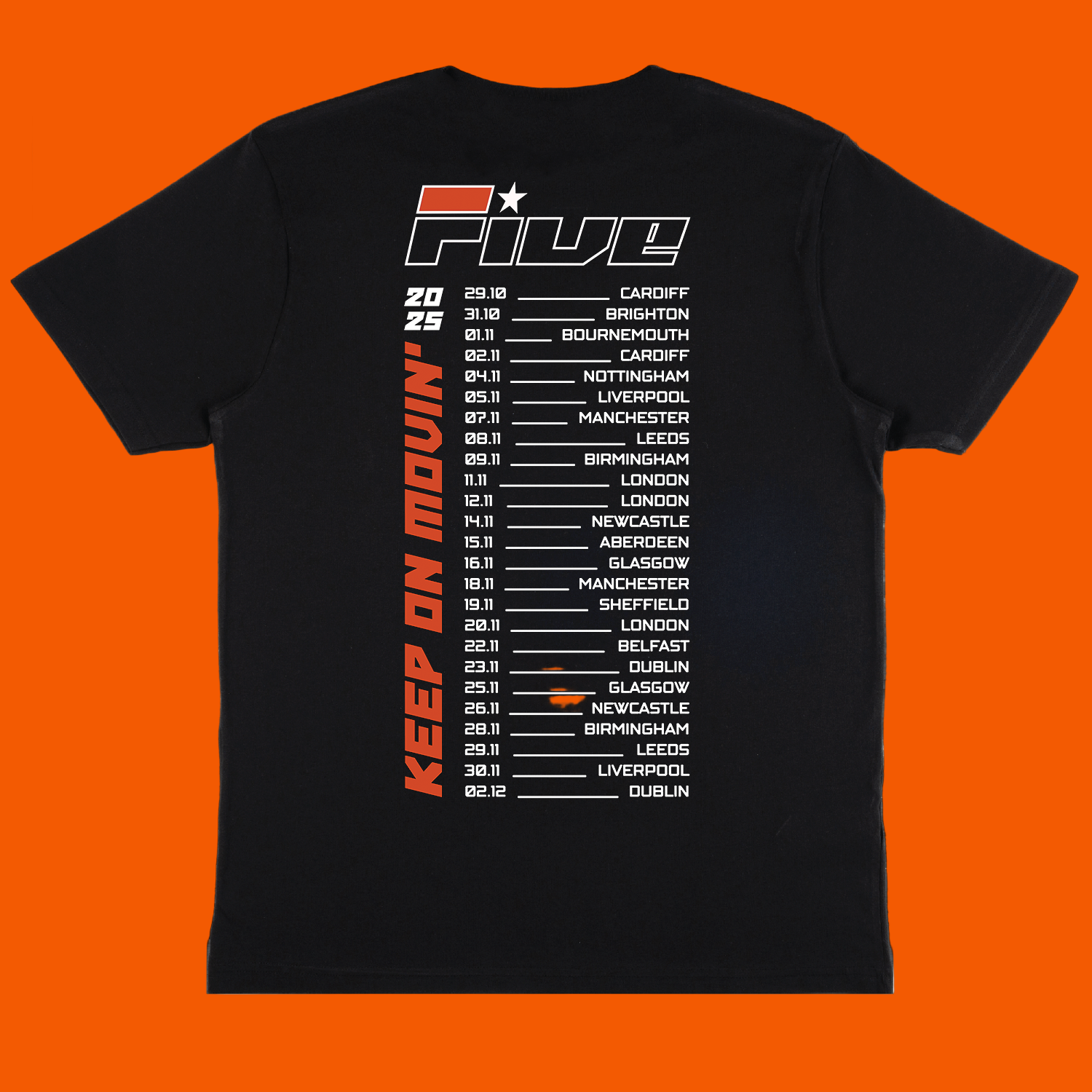 Unisex cotton black tee featuring stripe photo design on the front and 2025 tour dates on the back.