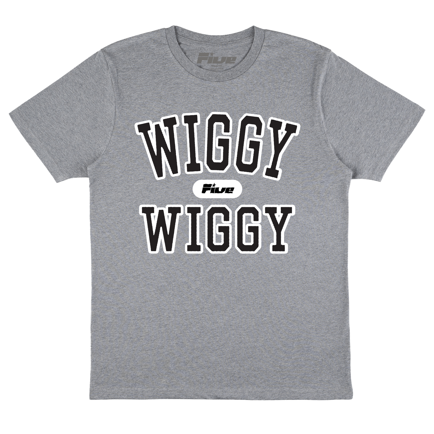 Unisex cotton grey tee featuring Wiggy Wiggy design on the front.